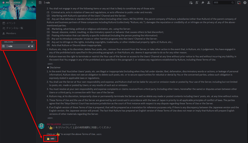 1. Access "METALVERSE Discord" and read the contents of the "rule" channel, then press the stamp of agreement. After the agreement, the "element-gate" channel will be available for viewing.